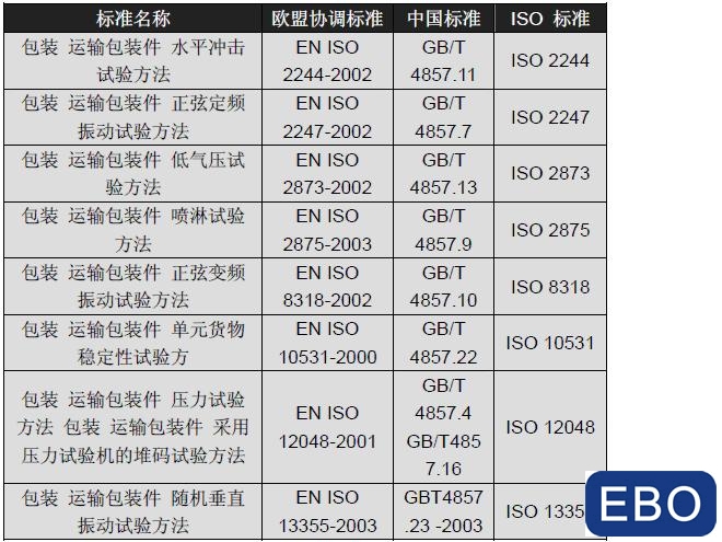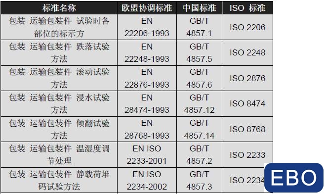 表 中國和歐盟協(xié)調標準關于運輸包裝件試驗方法對照表