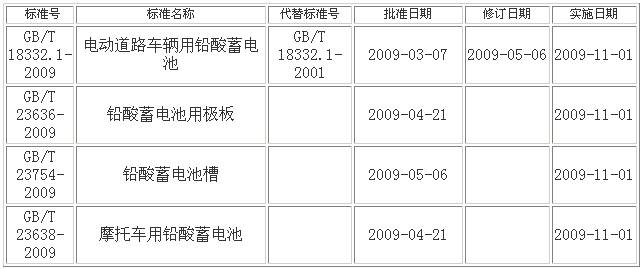 鉛酸蓄電池標(biāo)準(zhǔn)目錄