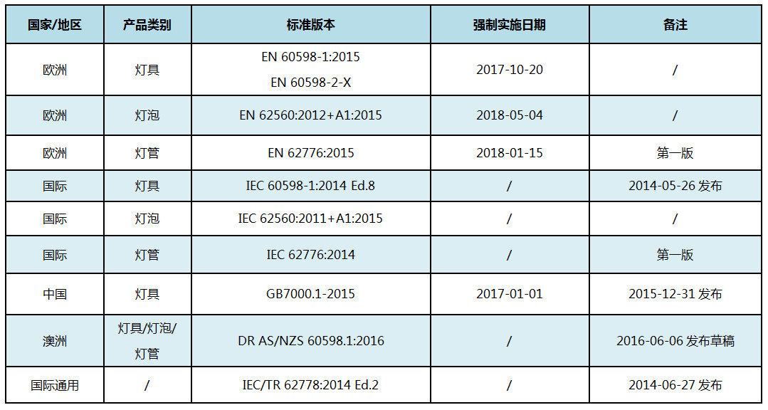 一、藍光危害評估涉及標準及實施日期